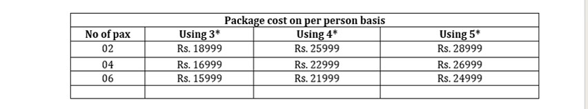 • Accommodation for 04 Nights • Daily Breakfast & Dinner at hotel • Meet and Greet assistance on arrival at Trivandrum railway station / airport • All transfers & surface travel by AC Standard car • All parking, Toll Taxes & State taxes